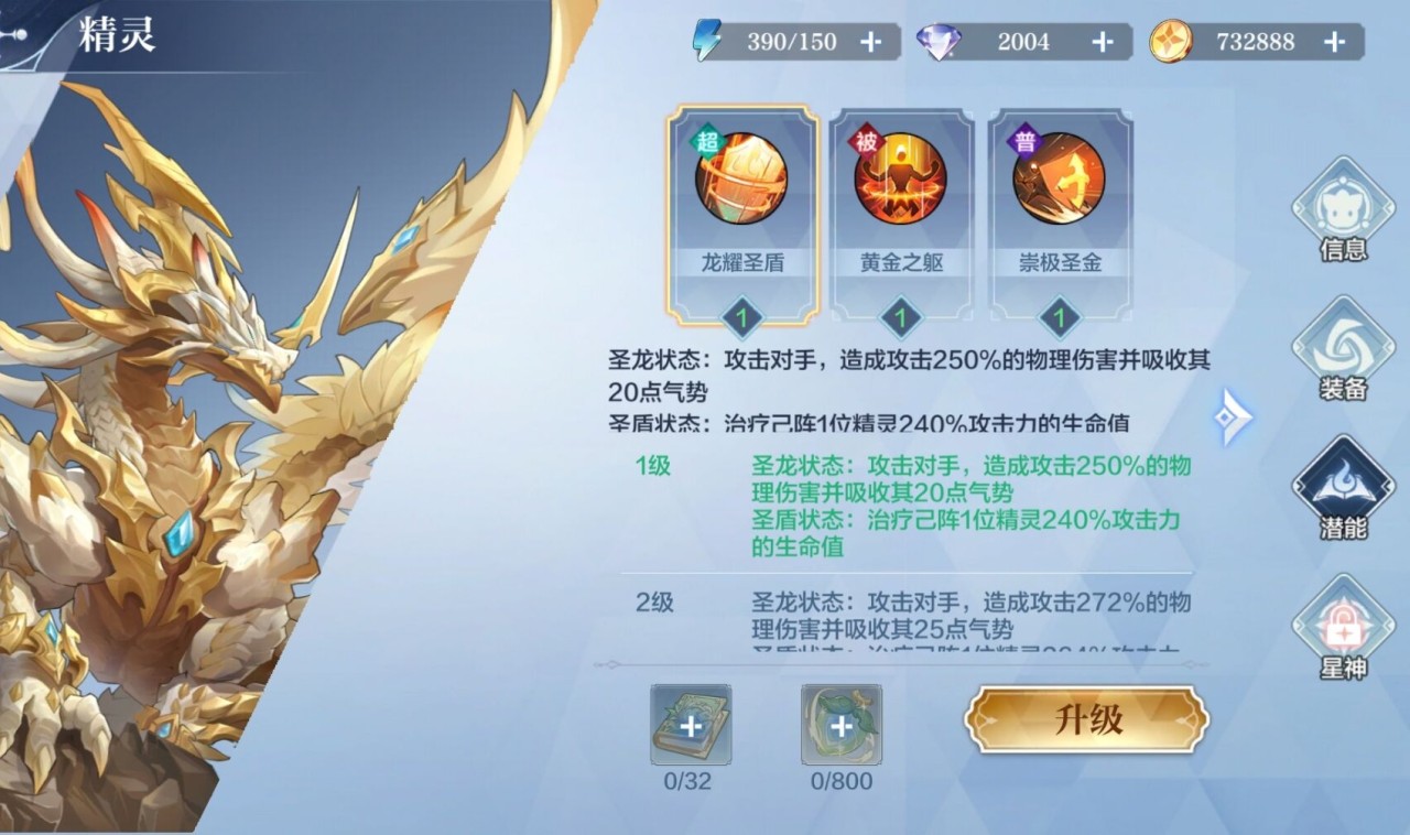 玩家給精靈的潛能進行升級是可以提升其戰(zhàn)力的,潛能其實就是提升精靈技能等級的,以圣域·黃金龍為例,小編將其的潛能提升到下一級之后,它的攻擊傷害就有了百分之二十二的提升,治療己方隊伍精靈生命值也有了百分之二十四的管家一小一特預測提升,不過給它提升這個潛能所需要消耗掉的守護潛能書與潛能果是很多的,但是提升潛能所可以提升的戰(zhàn)力也是很多的。